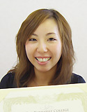 船山 法子 さん プロセラピスト資格取得 私は東京から離れた所に住んでいます。4月から医療・福祉分野の勉強をする前に短期間で学べるこの東京留学コースに入学して、1ケ月間でプロセラピストの資格を取得できました。これも暖かい先生方のお陰と感謝しています。元々、体の治療だけでなく心を癒す療法に興味があり、地元に帰ってこれから学ぶ医療関係の分野において、自然治癒力を引き出す「癒し」を加えた事に携わっていければと思います。 このカレッジの東京留学コースを選んだ理由は、実技の時間が多かった事、それにフリータイム制で、しかも何度でも受講できる所が魅力でした。地元から通える都市圏のスクールとも比較しましたが、宿泊費を含めてもこのコースの料金は破格の安さでしたし。 カレッジの雰囲気や講師陣はみんな感じが良く、少人数制で技術を学べたので身についたと実感です。最後の資格認定式で、先生方が“寂しくなる”と涙を流していただいた時に、本当に親身になって育てていただいたのだと感じました。そこがこのカレッジの本当の価値なんだと思います。 色々なセラピストの形があると思うので、それぞれ目標を持って頑張ってという言葉を、後輩の方々へのメッセージにさせていただきます。